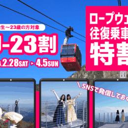 23歳以下(中学生以上)の方は『ロープウェイ往復乗車券 特別割引』!! ■期間:2026年2月28日(土) ~ 2026年…