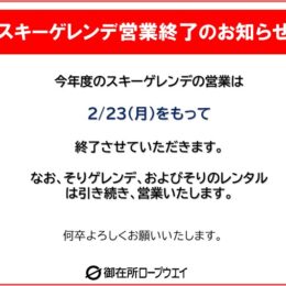 平素より御在所スキー場をご利用いただき、誠にありがとうございます。 今シーズンも多くのお客様にご来場いただき、心より感謝申し上げます。 …