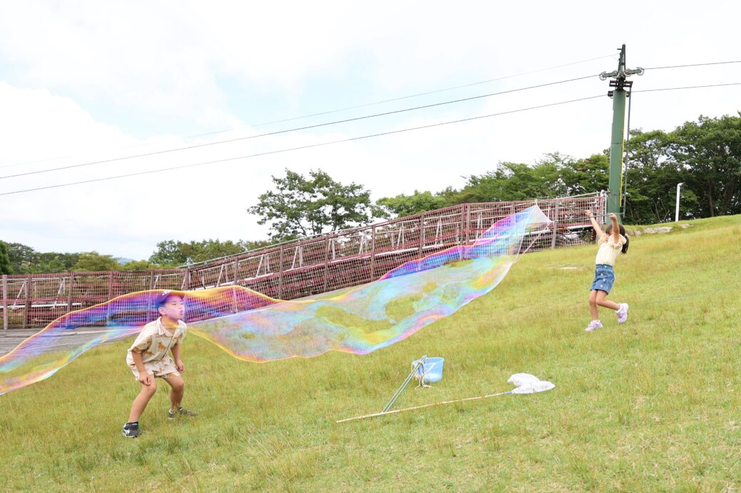 小さなお子さんなら全身入ってしまいそうなぐらい大きなしゃぼん玉を飛ばそう!