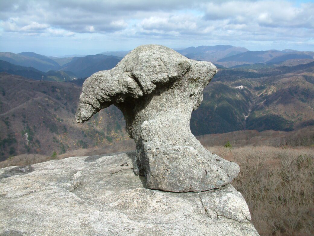 【コーススケジュール キノコ岩コース】御在所ロープウエイふもとの駅集合→国見峠→ナマズ岩→石門→国見岳山頂→青岳→キノコ岩→ございしょ自然解散